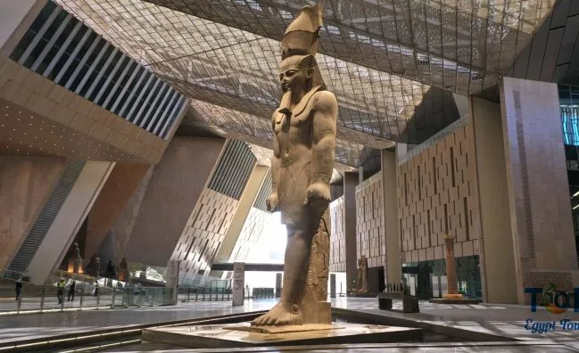 Grand Egyptian Museum Private Tour from Cairo. Immerse yourself in the rich history and culture as our expert guides lead you through the impressive exhibits, showcasing the treasures of pharaohs. Book your extraordinary journey with Top Ten Egypt Tours today! Marvel at the stunning modern design of the New Grand Egyptian Museum, a masterpiece of architectural brilliance that seamlessly blends ancient Egyptian motifs with contemporary aesthetics.